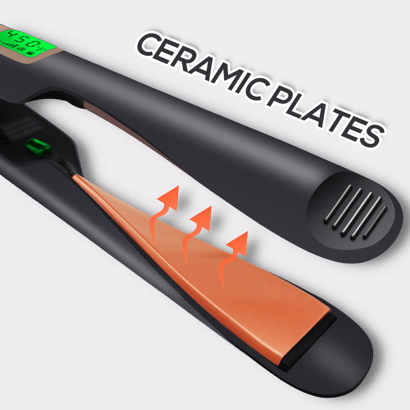 CERAMIC PLATES: The hair tool is equipped with ceramic plates that glide smoothly through your hair, reducing frizz and static while providing even heat distribution.