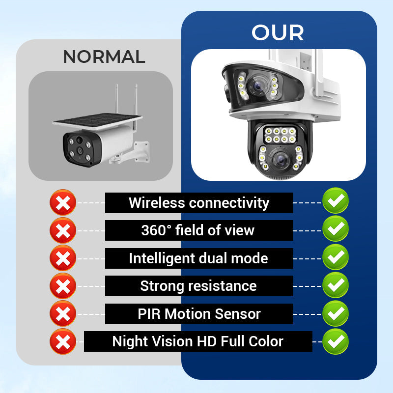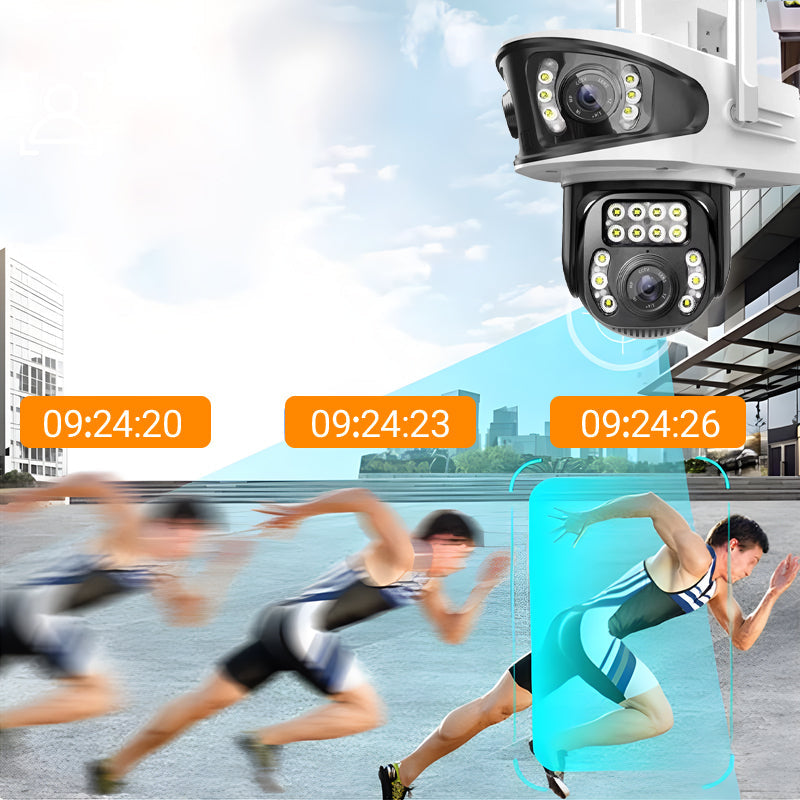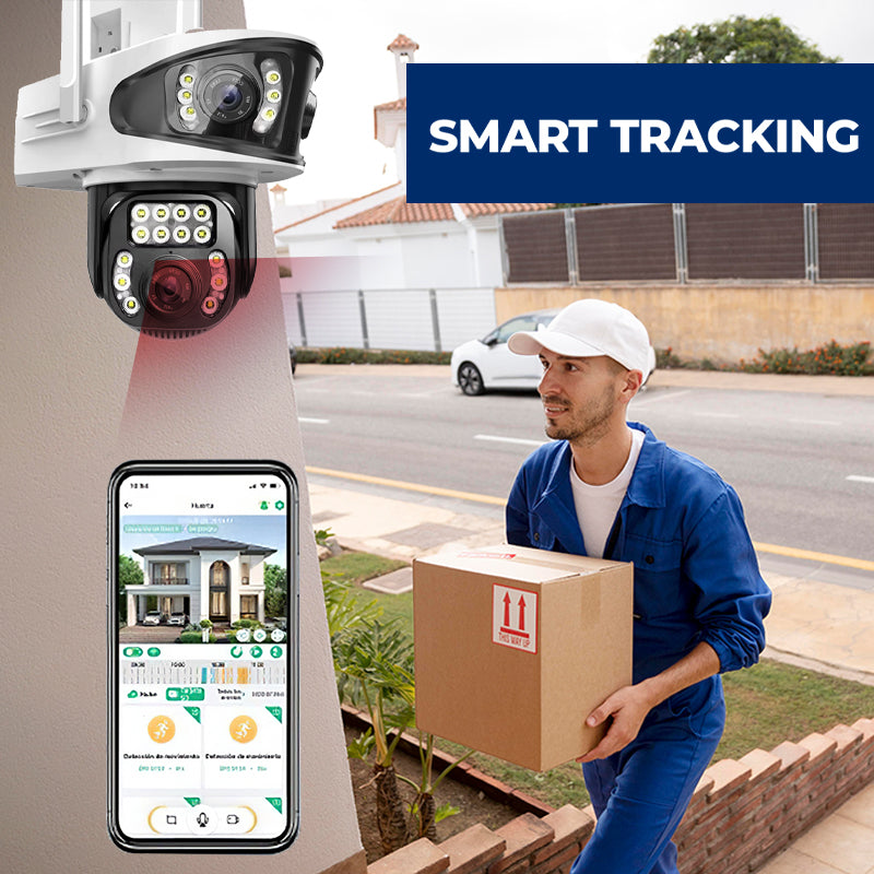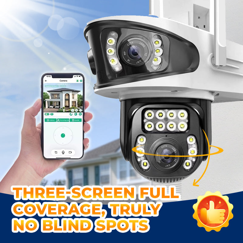 360° FULL VIEW WITH TRIPLE-LENS: This camera features three synchronized lenses, delivering a complete 360° panoramic view of your surroundings. With an intelligent cloud-controlled motorized gimbal, it provides smooth, automatic panning to cover every corner of your property.