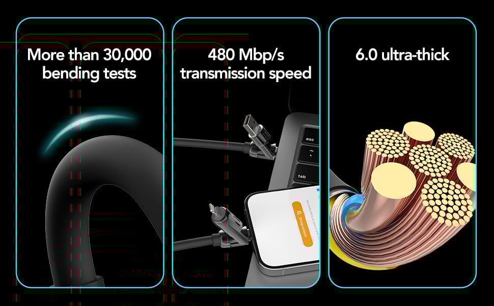 Charge your devices faster than ever with the 4in-1 USB C Cable 60W.