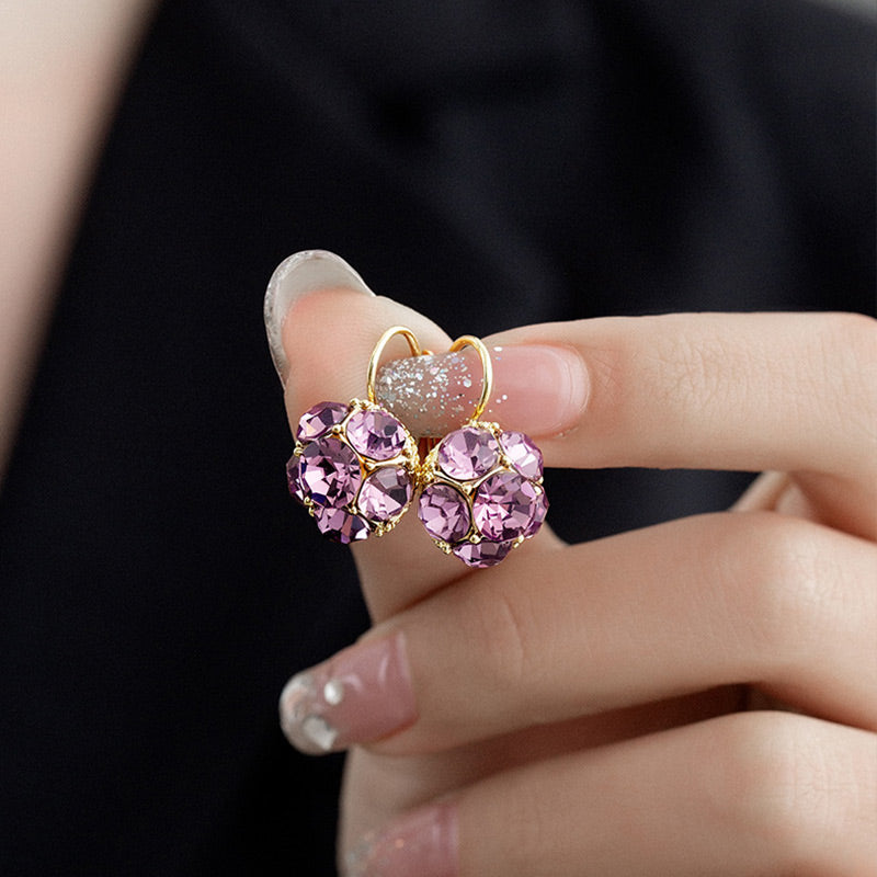 ELEGANT CRYSTAL SPHERE: The earrings feature a spherical cluster of multi-faceted crystals that catch the light beautifully, adding a touch of luxury. Their intricate design makes them perfect for formal occasions or to add sparkle to casual outfits.