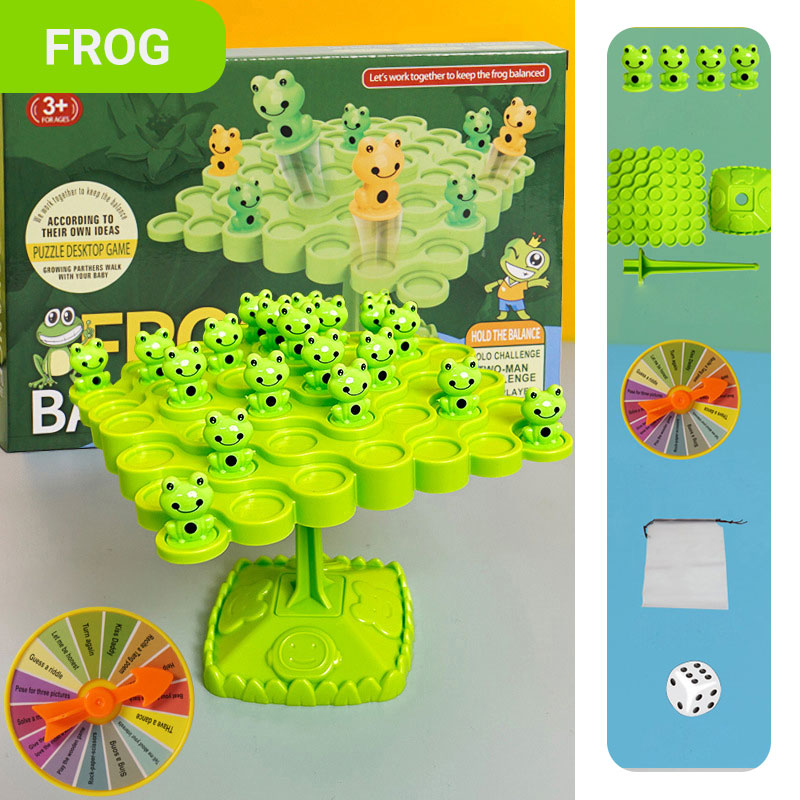 UNIQUE DESIGN - 3D balance games includes 50 frogs, balance board pillar base, adventure wheel, dice, and storage bag for easy storage after the game ends. Swing stack balance game is a two-player battle game, with this frog stacking game, anyone can effortlessly master balance in just 1 minute.