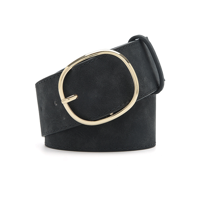 Women's Wide Faux Leather Belt with Round Buckle
