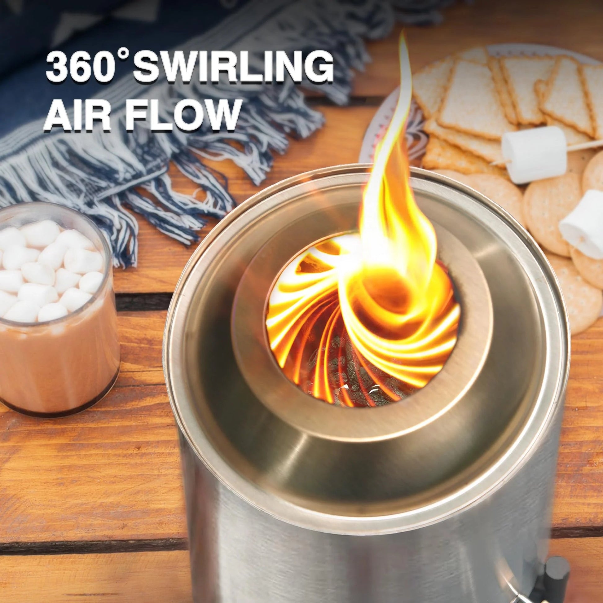 - Cooking Opportunities: Small smokeless firepit is equipped with a sturdy stove rack suitable for 6-8 inch pots. This is perfect for cooking delicious meals while enjoying the warmth of the fire. So portable fire pit provides you with convenience and takes your experience to the next level. Make family gatherings or outdoor camping more fun