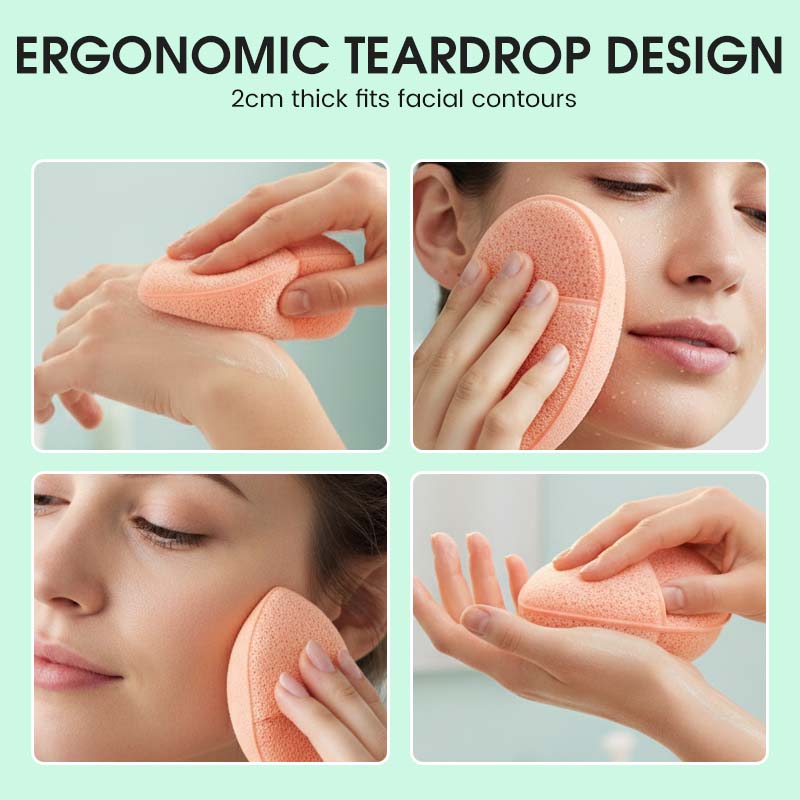 ERGONOMIC DESIGN & OPTIMAL THICKNESS - With a substantial 2cm thickness and an ergonomic teardrop shape, these sponges offer a comfortable grip and fit facial contours perfectly. The design enables precise cleaning of all areas while enhancing durability.