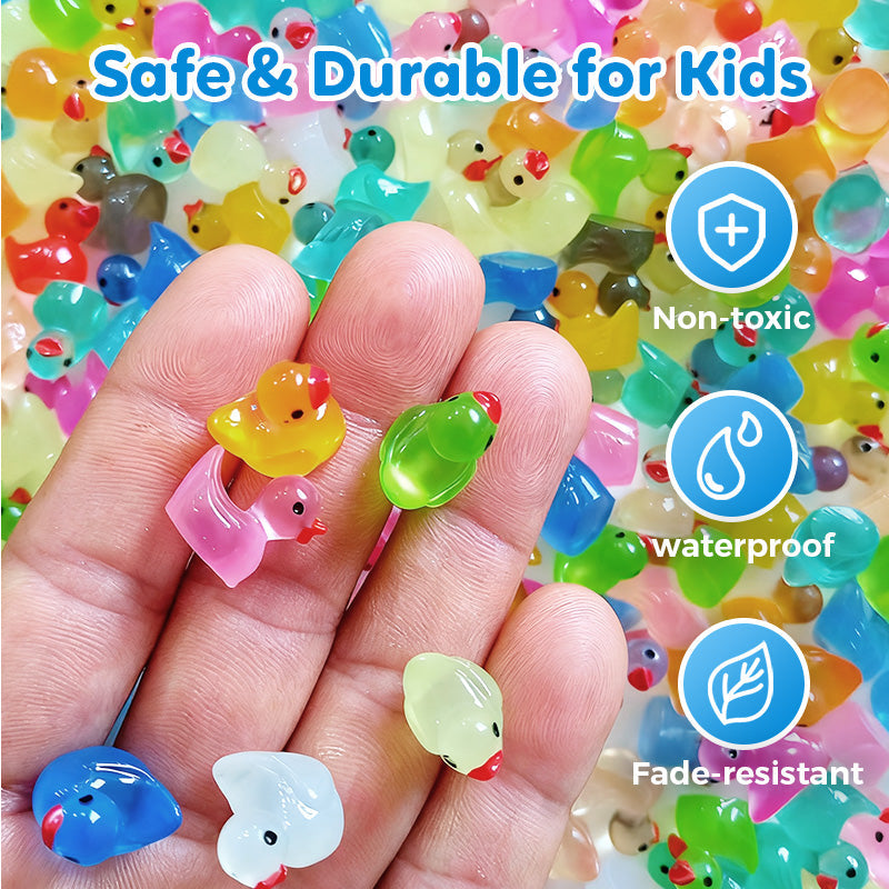 PLAY, LEARN, DECORATE - Hide them for a glowing treasure hunt, use them for counting, or tuck them into dollhouses and plant pots. From party favors to nightlight charms, these ducks inspire fun in every corner of childhood.