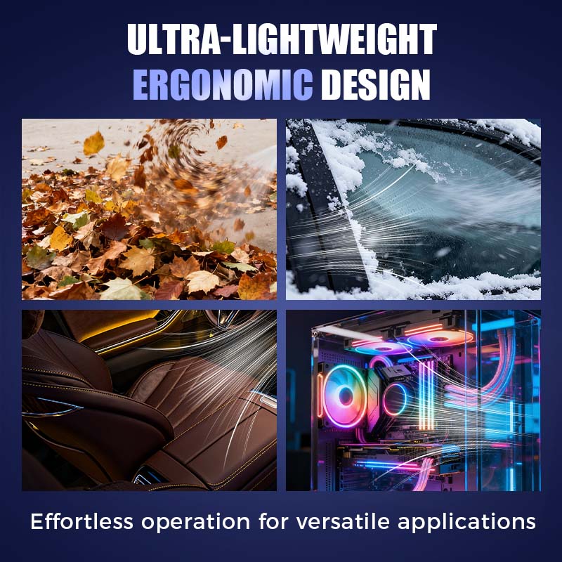 TURBOCHARGED AIRFLOW TECHNOLOGY: A precision-balanced fan blade creates a highly concentrated stream of air. This design effectively channels the force to dislodge debris from the most stubborn crevices with unmatched efficiency.