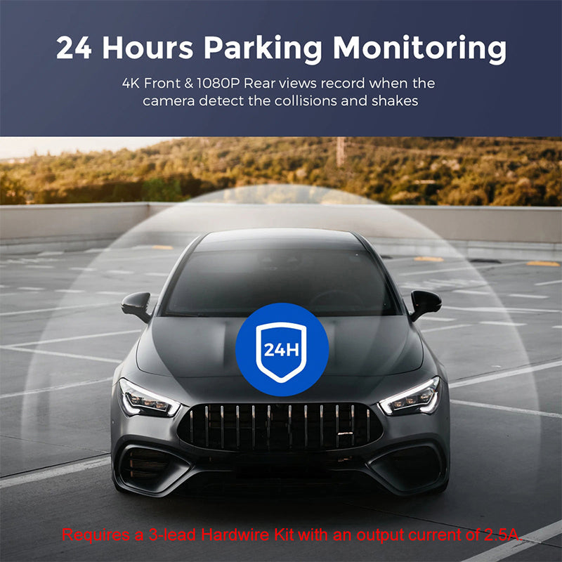 FRONT & REAR RECORDING: Experience exceptional clarity with 4K front and 1080P rear cameras. Capture all driving events, ensuring comprehensive footage day and night for your security.