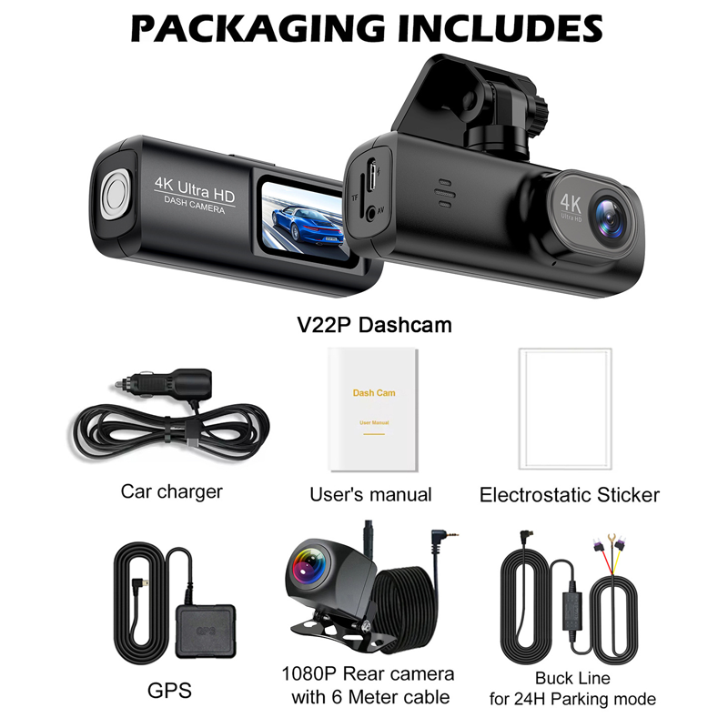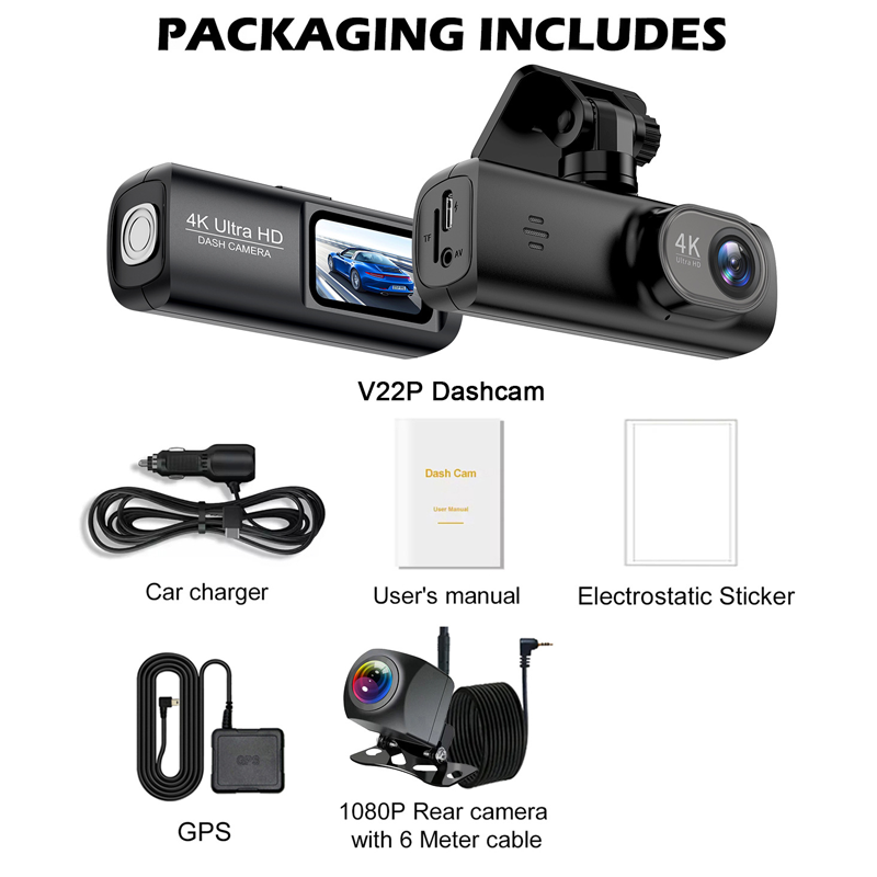 Package Include: 1* 4K Dual Camera Dash Cam with GPS