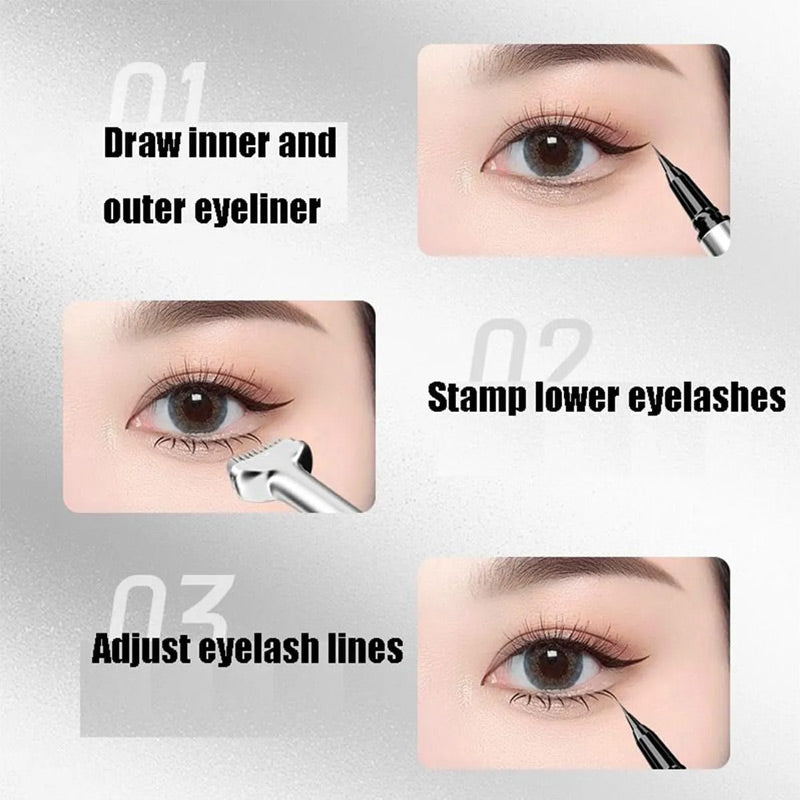 ONE BRUSH FOR DOUBLE USE: Eyeliners and eyelashes in one stroke, 0.01mm tip can easily describe eye makeup details, and the one-piece design is time-saving and convenient. An eyeliners pen has two eyelash stamps on it, corresponding to the left and right eyes respectively, which can better fit the curvature of the eyes.