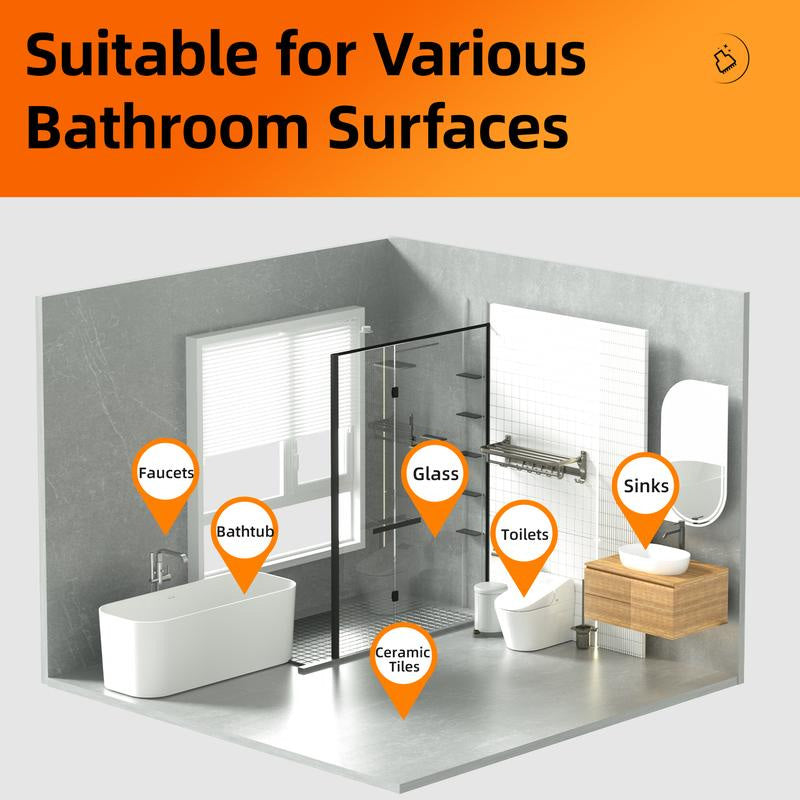 POWERFUL CLEANING, LEAVES YOUR BATHROOM FRESH AND SPOTLESS - Our powerful formula effectively removes soap scum and limescale, ensuring a hygienic bathroom without the need for scrubbing. Ideal for high-touch surfaces such as faucets, sinks, and shower doors.