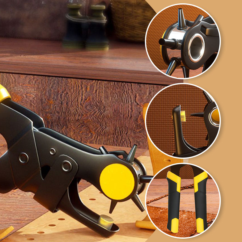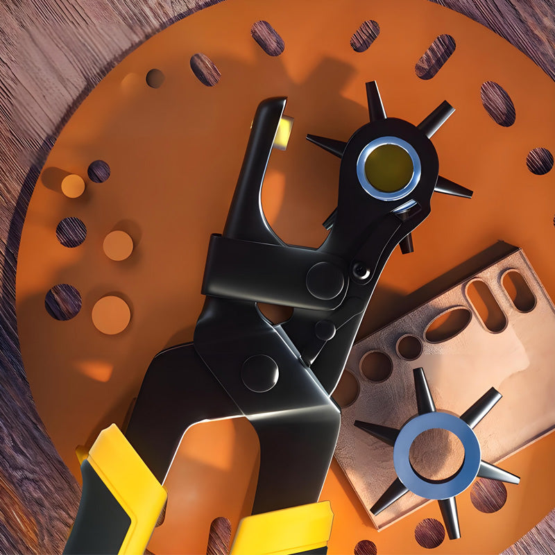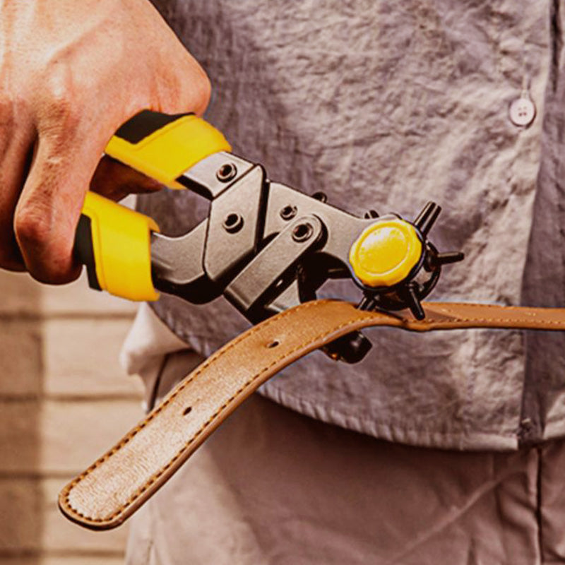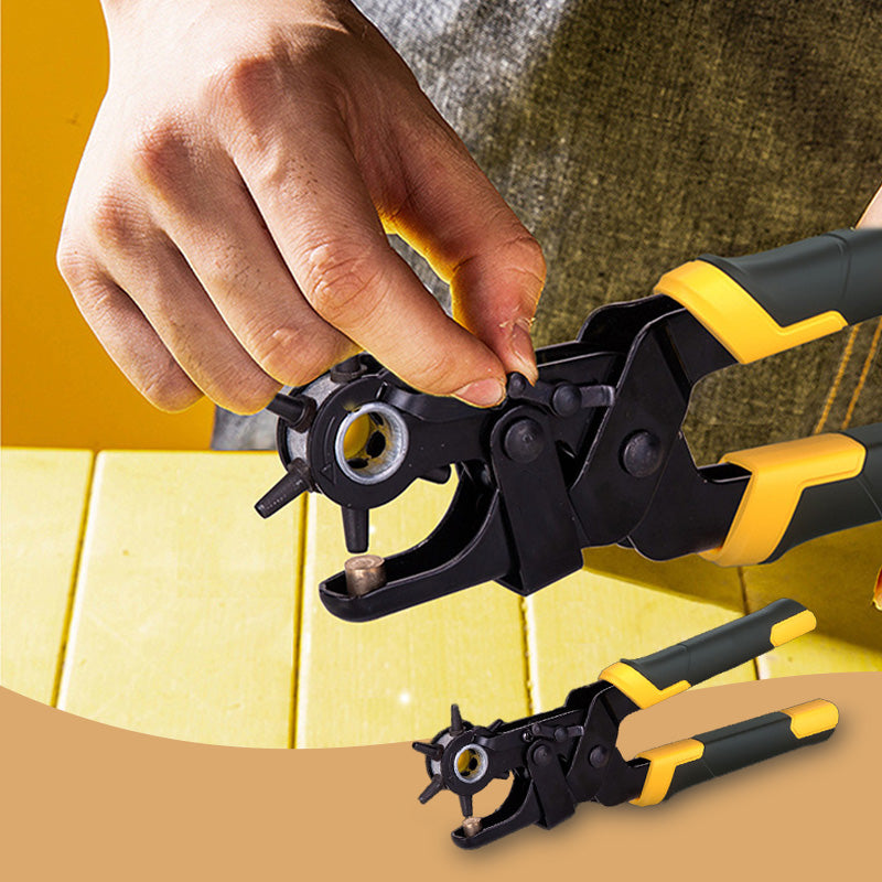 VERSATILE 6-IN-1 FUNCTION – Equipped with a 360° rotatable star-shaped head, these pliers punch six eyelet sizes in one tool. Switch between holes effortlessly for precise, clean cuts on leather, fabric, and more!