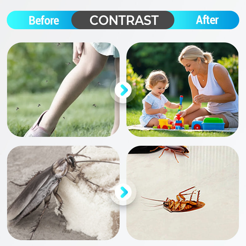 BROAD-SPECTRUM APPLICATION AREAS: Suitable for diverse indoor and outdoor settings, including kitchens, bedrooms, restrooms, offices, warehouses, and hotels, as well as gardens, patios, and courtyards. One solution effectively controls pests in residential, commercial, and outdoor spaces where insects gather or breed.