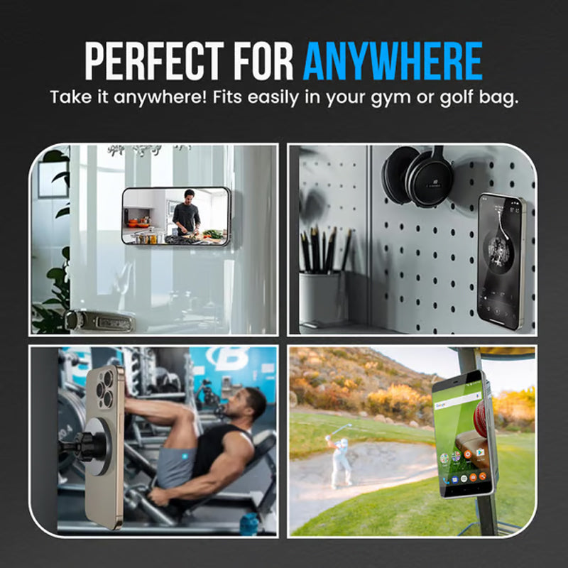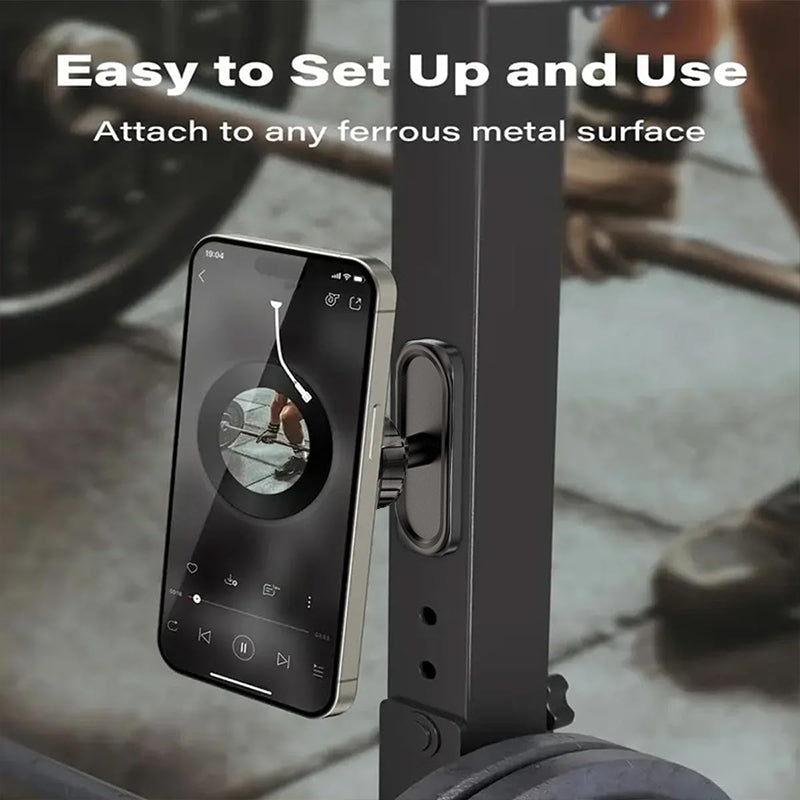 STRONG DUAL MAGNETIC HOLD FOR STABILITY: Equipped with a magnetic base, it ensures a firm grip on your phone, keeping it stable and secure, even during high-intensity workouts or sudden movements.